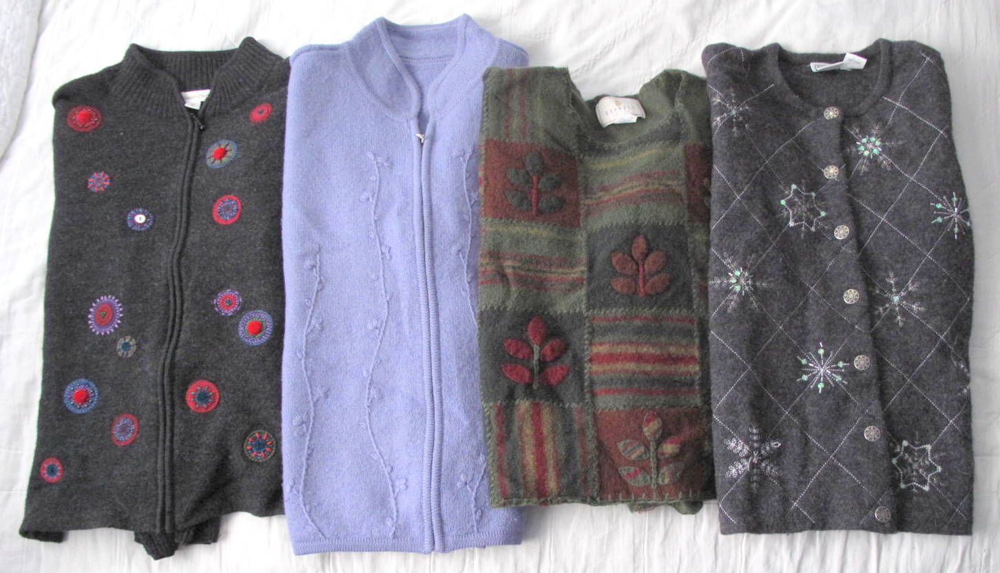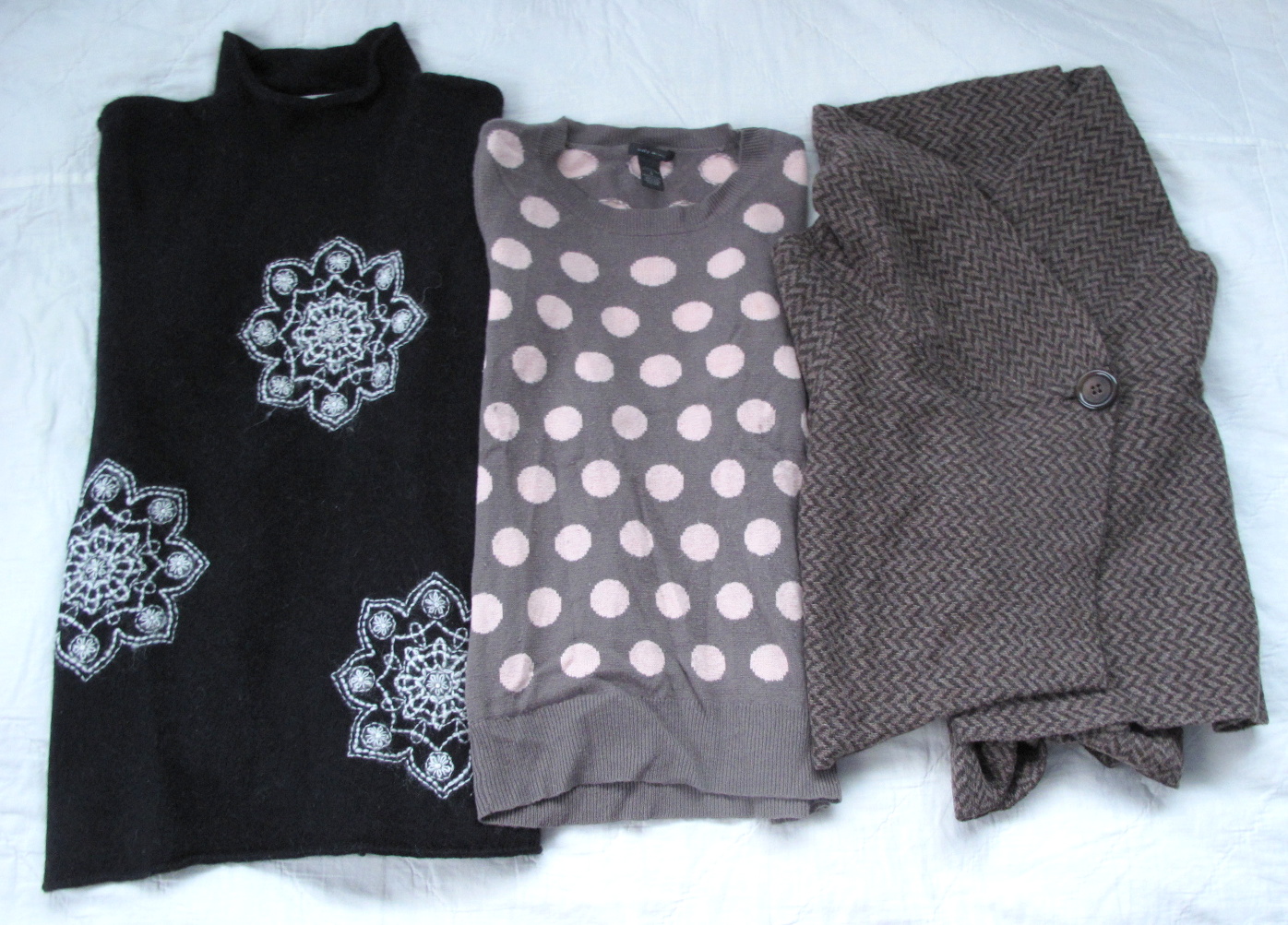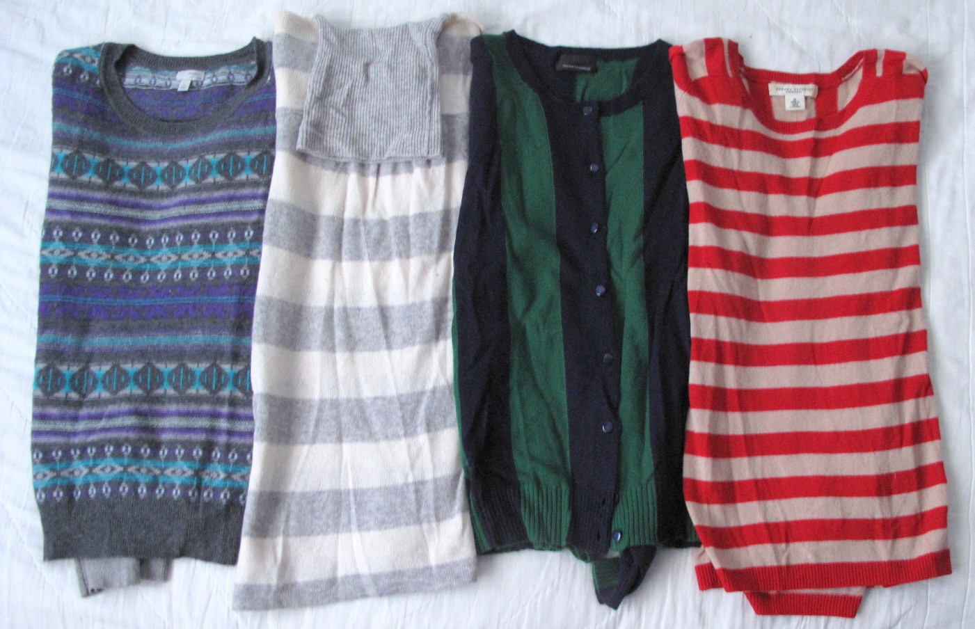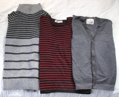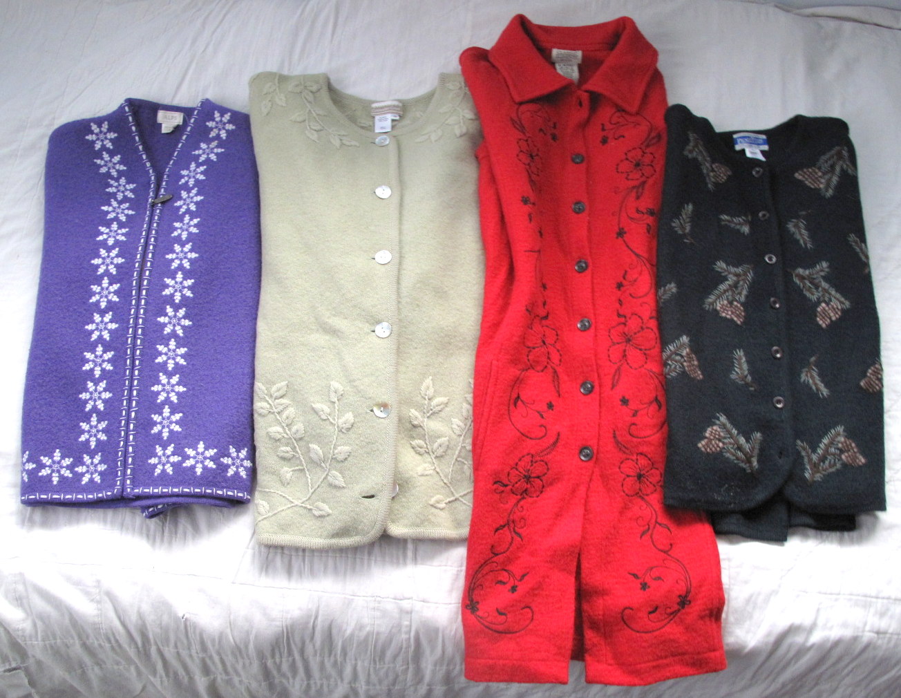 One of the sweaters had perfect cuffs for cozies for my son's water bottle. It is felted, and was the perfect size, so I didn't have to sew a thing, just cut them off and slip them on!