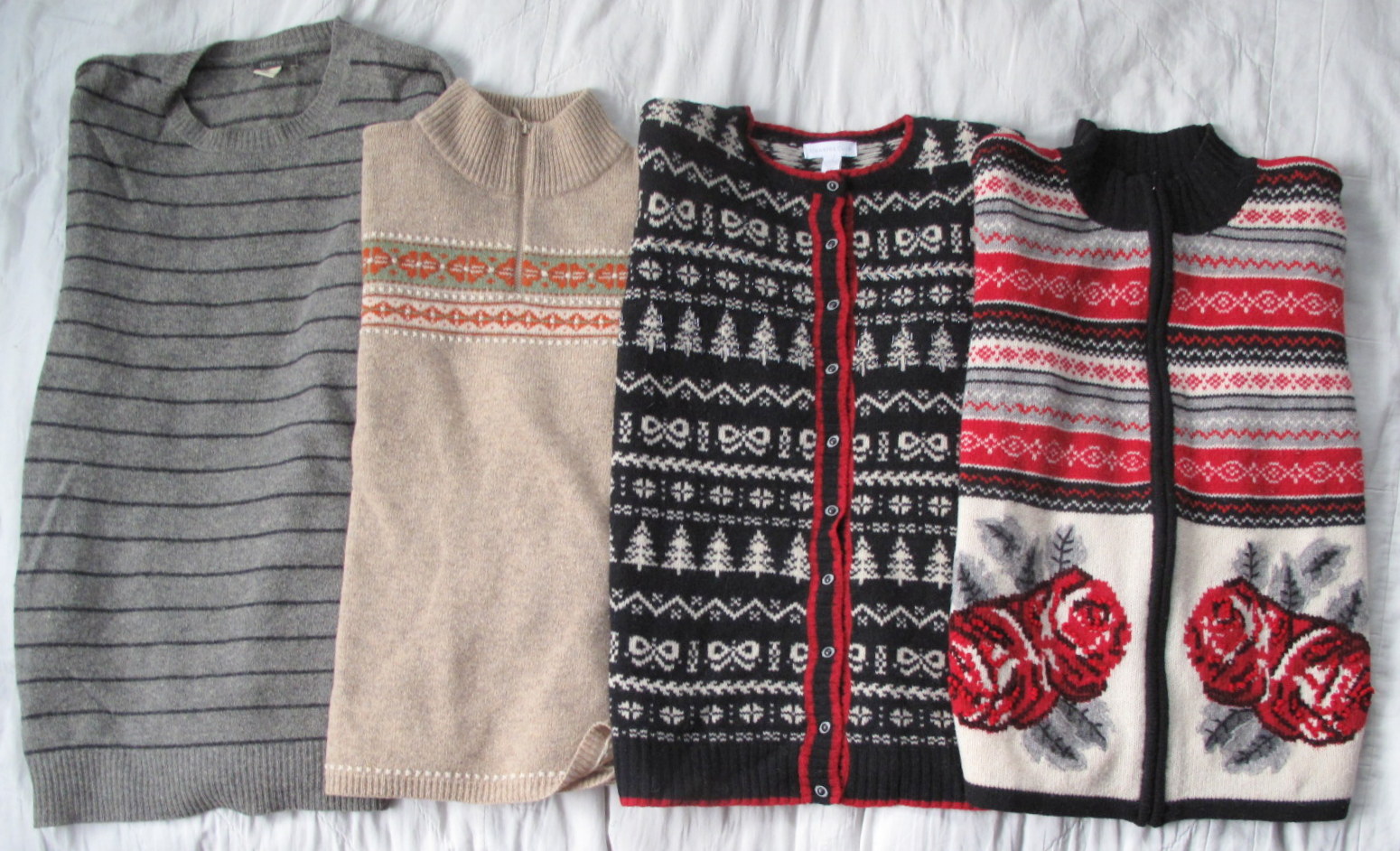 It's been a great 12 years (Can't believe it's been 12 years!), but Resweater will be closing. I have been bussier at work, postage costs have skyrocketed, and the sweaters have become harder to find. Thank you to all of you who have supported me through the years. It has meant a lot to me.